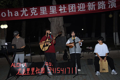 金秋九月,又到高校开学季。为向众多刚踏入校园的山理工学子展示校园风采,宣传音乐文化,了解社团风貌。9月16日晚上8时,Aloha尤克里里社团在东校区中心花园举办迎新路演,社团全体成员参加。
