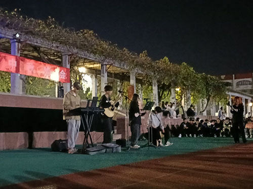 晚上九点半路演结束,同学们依依不舍的离开现场,活动演出成员也挥手欢送。最后,Aloha尤克里里社团全体成员在活动现场留影纪念。