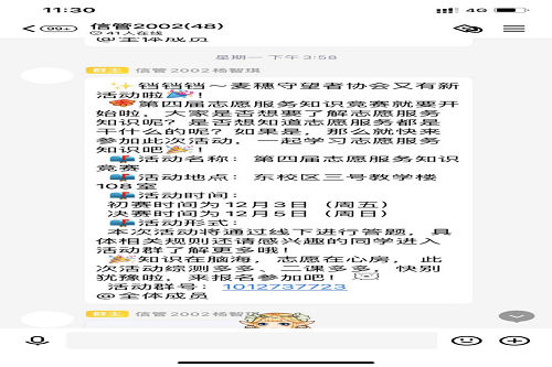 为促进学生思想道德建设,响应我校“五有人才”计划,落实我院办学理念和人才培养模式,更深入地推进“大学生素质拓展计划”,同时也为使每个人积极投入到志愿服务中去,太阳成集团tyc122cc入口麦穗守望者协会于2021年11月28日至12月1日进行“志愿服务知识竞赛”的宣传活动,此次活动面向太阳成集团tyc122cc入口全体在校学生,旨在提高同学们的综合素质,加强对志愿服务的理解和认识,积极有效的参与志愿服务工作,实现自身价值。