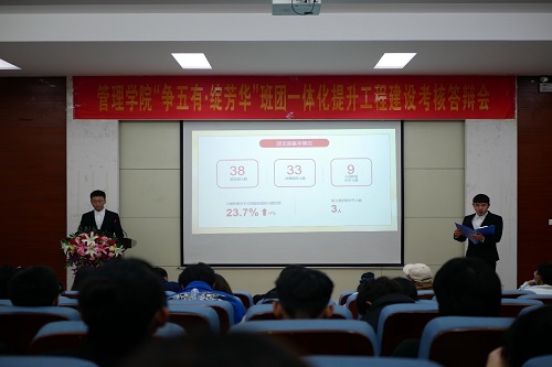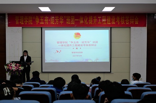 12月2日下午,管理学院在4号教学楼二楼报告厅开展2020-2021学年“争五有·绽芳华”班团一体化提升工程建设考核答辩会。本次会议由团建事务工作常驻志愿者亓育玺主持,学院辅导员靳祺、郑坤担任评委,20级班长、团支书及大众评审参与本次会议。