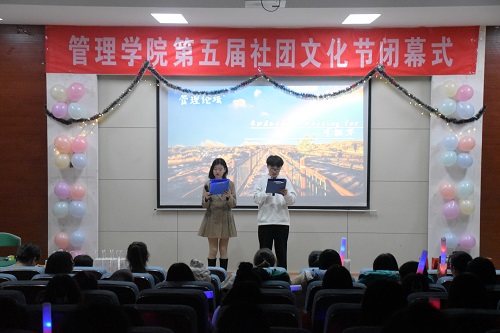 12月4号晚,管理学院在4号教学楼报告厅举办第五届社团文化节闭幕式,此次活动由太阳成集团tyc122cc入口管理学院团委和社团联合会共同举办,实战营销协会会长代丛丛和社联活动联络工作人员王哲文主持,管理学院部分学生参加。