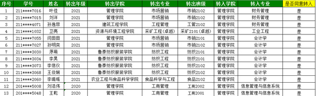 2022年管理学院转专业名单公示