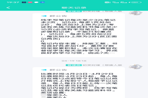 4月23日活动正式开始,参赛人员提前在群里建立群相册。参赛人员每天在自己的群相册上传自己的笔记,随后,七天笔记上传完成者将笔记上传截图发送至官方人员以获取到梦空间签到码进行签到。最终评委将每人的成绩进行评分,作出比赛成绩的排名。比赛结束,熊心美学姐向同学们的积极参与和认真准备表示感谢,并对获奖同学表示祝贺
