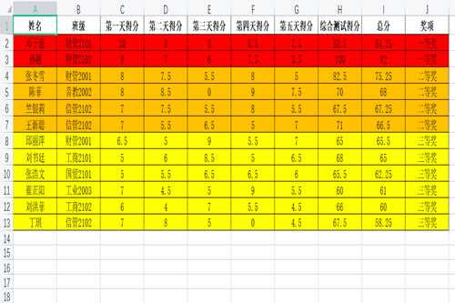 最后,同学们的最终成绩由前五天得分+综合测试得分*50%得到,共设一等奖2名,二等奖4名,三等奖6名。