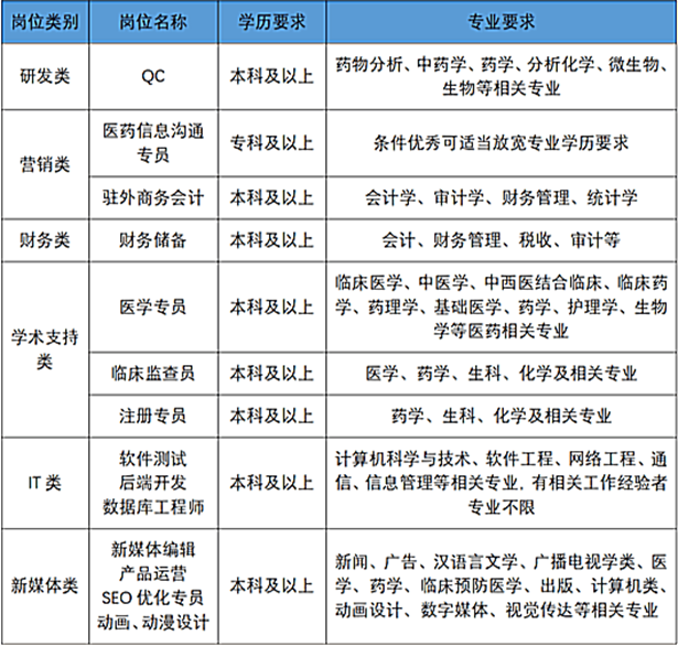 1.专业要求:药学类、医学类、化学化工类、生科类、计算机类、经济管理类、法律类、艺术设计类等相关专业。