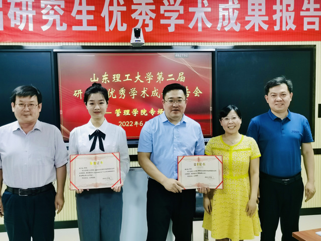 紧接着,研究生工作部副部长张少全、管理学院副院长白福萍为两位同学颁发了荣誉证书。