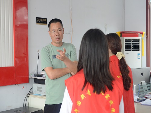 仪式开始之前,李振宇与实践团成员就土地托管对村集体收入的影响、村内土地托管的具体数据、村民的土地托管意愿等进行交流互动。他指出,目前村庄内实施土地托管的农田已达百分之三十,村内的年轻人更愿意实施该服务模式,但老年人对该模式的接受程度普遍不高,村委会现阶段主要任务是加大宣传力度,让更多村民了解到土地托管服务政策的优点,不断推进该政策的落实。