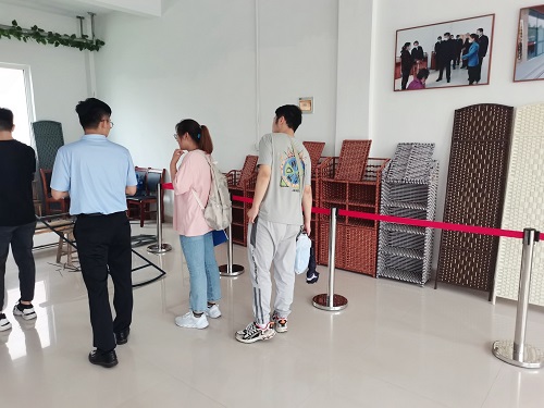 第二站来到黄河南展区文化展观,跟随总书记步伐,参观老年餐厅,据工作人员介绍,当前因疫情防控原因暂未开放餐厅,正常情况下餐厅每天可容纳四五十位老人同时就餐,在政府补贴下来,低保、五保户等特困人员一顿饭只需一元钱。60岁以上老年人实现老有所养、老有所依。接着来到金岸草编合作社,两位奶奶正在编制屏风,合作社里展示着屏风、篮子等成品、半成品,工作人员称,在合作社工作即可满足日常生活经济来源,又打发时间、充实生活。下一站是杨庙社区便民服务中心,当前社区服务工作已不在这进行,但这里是社区建设和发展的见证者,是社区凝聚力的中心。
