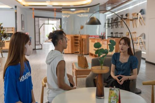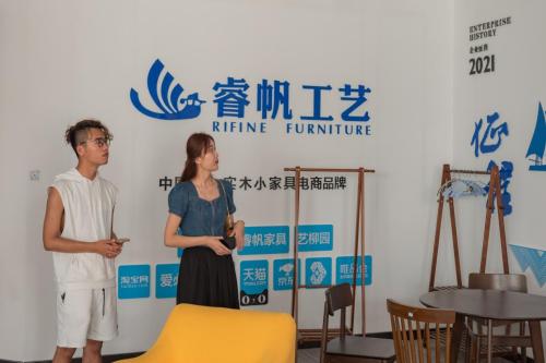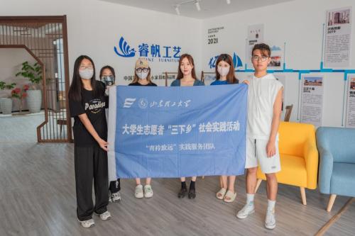 实践团成员了解到睿帆工艺是一家集实木家具生产、仓储、销售于一体的民营电商企业,是鲁西南地区最大的家具电商产业,短短五年线上销售从0到5亿,开创了菏泽众多工艺品外贸企业电子商务成功转型之先河。