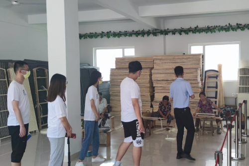 接下来,工作人员带领团队成员继续走访几家草编加工作坊。团队成员和当地社区居民交谈得知,在社区党总支的牵线搭桥下,这个项目得到了其他村的认可和支持。很快,由11个村“众筹”的草编工艺品加工专业合作社挂牌成立。草编合作社的社员也已经从刚开始的只有10多人发展到了如今的30余人,每个月的屏风出货量也从最初的仅仅2000片增长到如今的7000余片,单月盈利破2万余元。在了解工作坊的成立后,实践团队长李文迪感叹道:“从过去黄河滩里的“穷窝窝”,到如今幸福河畔的“美家园”,杨庙社区的变化翻天覆地!”从无到有、由弱变强,快速成长的背后,是草编合作社打破传统运作模式,使其日益成为社员持续增收和集体经济积累的有效途径。“要发挥好基层党组织战斗堡垒作用,努力把社区建设成为人民群众的幸福家园。”习近平总书记曾强调过。