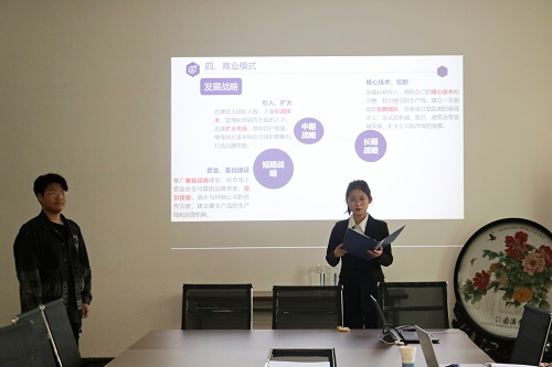 答辩期间,项目答辩人从项目概况、特色亮点、运行现状、财务分析等多方面进行陈述,答辩内容充实、富有逻辑性,令评委老师印象深刻。项目答辩人陈述完成,进入第二环节,评委老师对候选人的答辩内容进行问辩。评委老师建设性地指出答辩PPT以及项目设计的不足之处,与项目答辩人进行深入细致的交流,以便于候选人对项目进行修改,进而全面地了解科研项目,深入探讨学术科技作品的可行性、前瞻性、科学性。最后,评委老师对该项目进行评审打分。