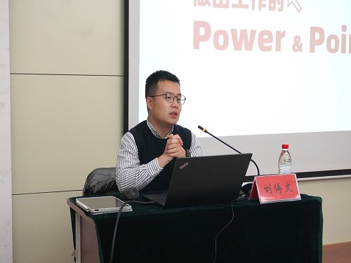 报告伊始,刘博文讲述了熟练掌握PPT制作技能的重要性。他指出,PPT制作技巧经常应用在答辩与工作汇报中,简洁明了的PPT能够捕获人们的注意力,并使想表达的内容输出更加高效。同学们要悉心学习,坚持练习,才能做出优秀的PPT作品,为答辩和工作汇报添彩。