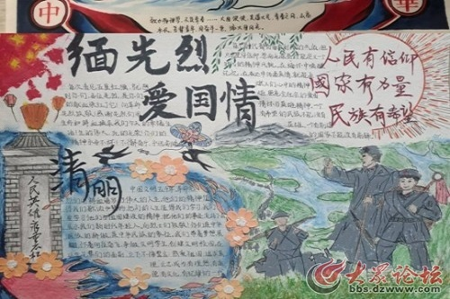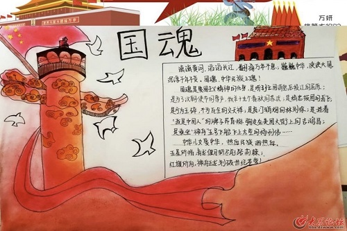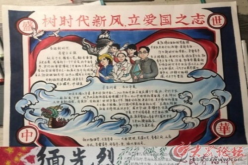 活动伊始,参赛同学自主选择“革命先辈”或“红色事迹”手抄报主题进行手抄报设计。活动期间,同学们采用水彩、水粉、素描等方式对自己心中所思所想的爱国之志进行描摹,同时新奇的色彩搭配和布局构图也让手抄报变成志向的彰显、情感的载体。