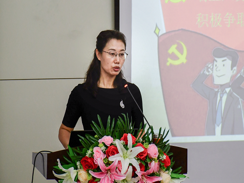 会议伊始,高静静分别“从中国共产党是一个什么样的政党”、“我们为什么要加入中国共产党”、“我们怎样才能加入中国共产党”三个方面进行深入阐述。围绕“中国共产党是一个什么样的政党”,高静静讲到,十九大通过的党章中明确指出党的宗旨是全心全意为人民服务,中国共产党是中国工人阶级的先锋队,同时是中国人民和中华民族的先锋队,是中国特色社会主义事业的领导核心,代表中国先进生产力的发展要求,代表中国先进文化的前进方向,代表中国最广大人民的根本利益。要坚持党的指导思想正确指引,在中国共产党领导下,坚定不移地走中国特色社会主义道路,全面建设小康社会,加快推进社会主义现代化,实现中华民族的伟大复兴。
