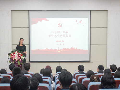 9月22日下午,管理学院在4号教学楼二楼报告厅举行新生入党启蒙教育大会,此次会议由学院党委副书记高静静主讲,2022级全体新生分别在报告厅主会场和各个教室分会场进行学习。