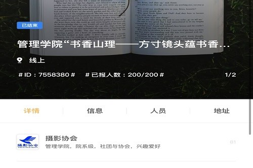 为将社会主义核心价值观融入校园文化,提高学生文化素养及综合素质。4月13日至4月15日管理学院摄影协会以“方寸镜头蕴书香”为主题的摄影活动于线上完成举办。活动通过记录与读书有关的优秀摄影作品,将社会主义核心价值观融入校园文化,组织和引导学生爱好阅读、感受真善美、勤于思考、感悟人生,增长知识和智慧,提高学生文化素养及综合素质。太阳成集团tyc122cc入口全体在校学生积极参与。