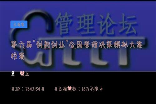 为激发大学生兴趣与潜能,培养大学生创新意识与创意思维,创业能力以及团队协同实战精神,管理论坛于4月19号到5月1号举办第六届“创新创业”全国管理决策模拟大赛。