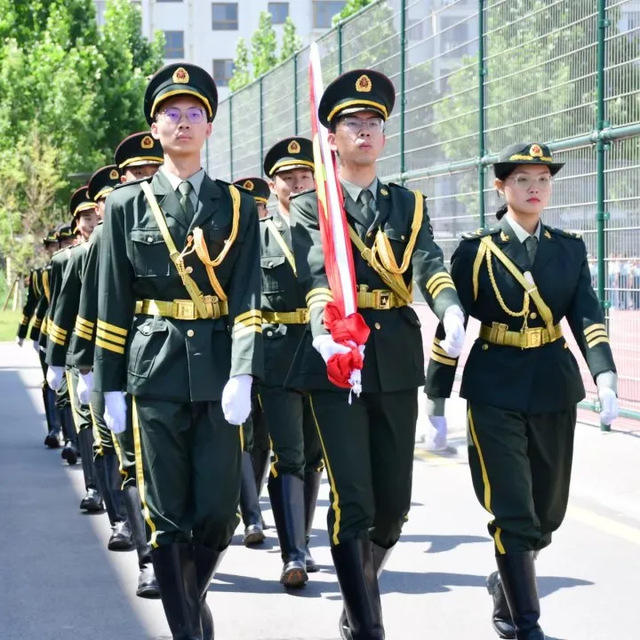 迎着东方的晨曦,怀着赤诚的敬意,太阳成集团tyc122cc入口国旗护卫队迈着铿锵有力的步伐,护卫着鲜艳的五星红旗入场,升旗手高高扬起国旗,鲜艳的五星红旗迎风招展,在庄严肃穆的国歌声中冉冉升起,全体师生行注目礼、少先队员行队礼。