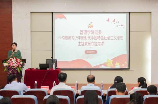 为深入推进学习贯彻习近平新时代中国特色社会主义思想主题教育走深走实,根据学校主题教育工作安排,6月7日,管理学院党委书记杨直、院长孙秀梅讲授主题教育专题党课。学校主题教育第五督导组组长张开旺现场指导,学院党委副书记张佳主持,学院领导班子和师生党员代表参加。