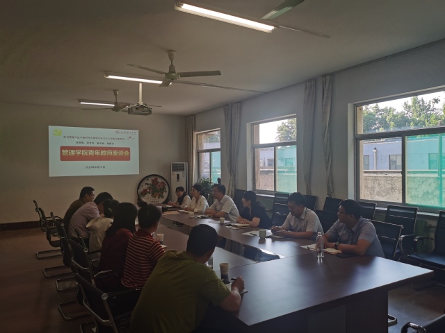 为全面推进学习贯彻习近平新时代中国特色社会主义思想主题教育走深走实,帮助青年教师快速适应岗位、加快成长,6月15日下午,管理学院在四号教学楼204会议室举办青年教师座谈会。会议由,管理学院党委书记杨直、院长孙秀梅、党委副书记张佳,副院长胡付领、白福萍、宋剑锋出席会议,学院部分青年教师参会,会议由管理学院院长孙秀梅主持。