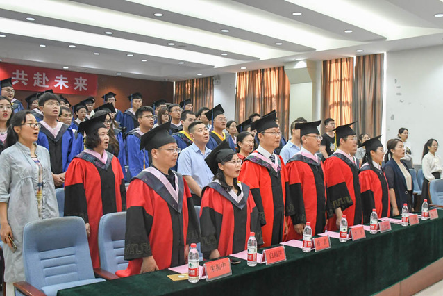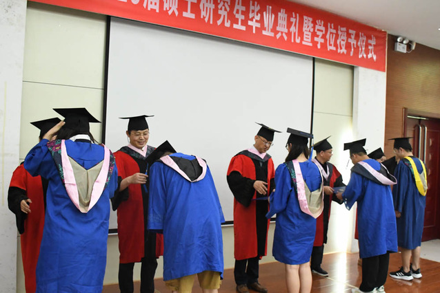在热烈掌声中,赵艳雷宣读关于授予王纪凯等68名研究生硕士学位的决定,学校学院领导共同为毕业生们拨穗正冠,授予学位、颁发证书。