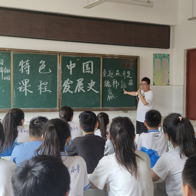 在中国发展史课程中以,志愿者通过生动有趣的讲解和互动活动,向学生们展示了中国的伟大成就和独特魅力,帮助学生们了解了中国古代历史的重要里程碑和发展脉络。在扩展知识面的同时培养其对历史的探索精神和思辨能力。