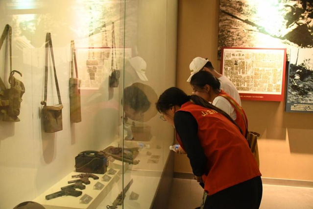该图为实践团成员观看战争枪支器械。高嘉瑞摄