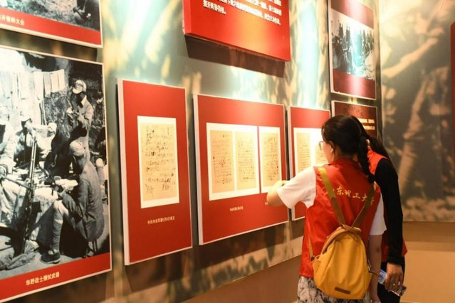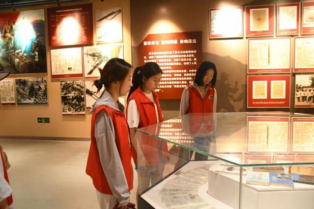 该图为实践团成员观看战争资料。高嘉瑞摄
