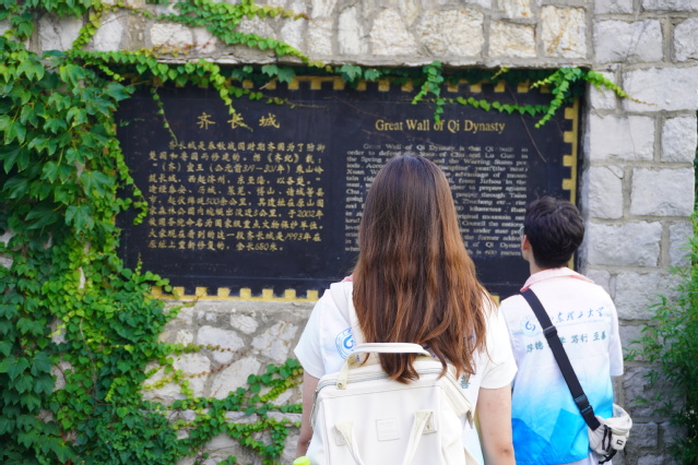 齐长城遗址是我国古代劳动人民汗水的结晶,实践团仰望齐长城古朴的身躯,感受其融自然景观与人文景观于一体的风采,见证遗址沿线高质量发展的新活力,聆听齐长城今天的故事,从中感受到齐文化的魅力与深刻内涵。