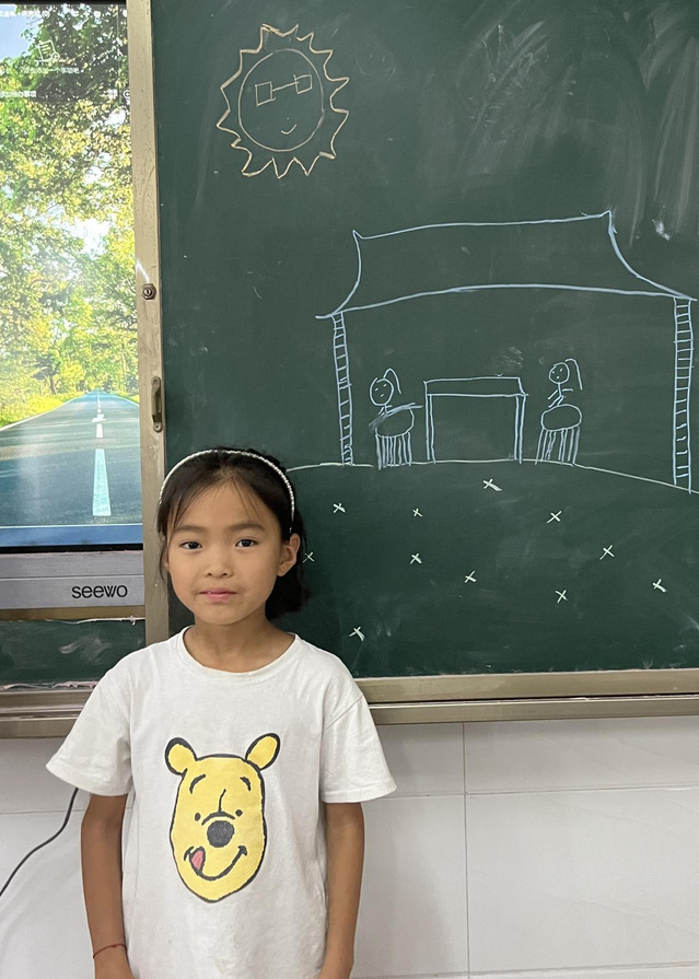 图为支教地姚集小学学生绘画课成果展示。(韩丽蓉摄)