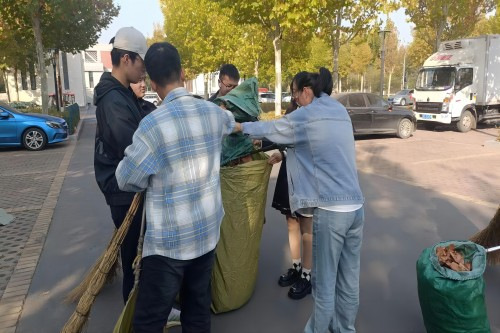 活动伊始,负责人组织同学们在学校南门集合,清点好人数后乘车前往目的地,并于上午八点准时到达孝妇河湿地公园喷泉广场。随后,在现场工作人员的指导下,负责人根据树叶分布数量将志愿者分成五个小组,接着领上扫帚、耙子和垃圾袋在工作人员指定的位置清扫落叶。活动过程中,志愿者们发现了很多隐藏的垃圾。大家手持垃圾袋和拾检器,不畏脏、不怕累,任劳任怨地忙碌着。最终,烟蒂、塑料瓶、纸张等隐藏在公园里的垃圾被志愿者一一清扫出来。