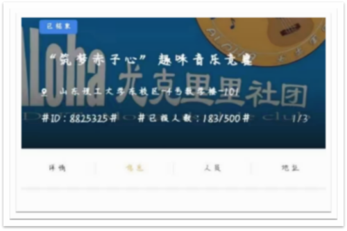 活动伊始,社团宣传部编辑线上宣传文件,并采取线上线下同步宣传的方式进行宣传。线上采取QQ活动群填写报名表格的方式以及在到梦空间进行报名,线下由社团成员在餐厅门口发放宣传单页以及报名表的方式。活动分为初赛和决赛,活动地点为东校区四号教学楼101教室。