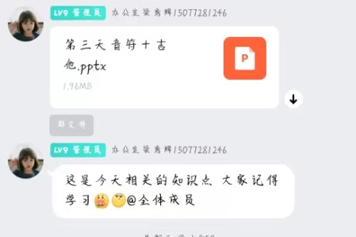 随后,社团成员每天都会在QQ群中发送简单的乐理知识合集,并且每天的学习程度逐渐加深。同学们可以通过每天碎片化的学习,不仅提升了音乐鉴赏能力,了解了音乐知识,还养成了一种优良习惯.同时,为了检测同学的学习成果,每晚固定发送检测试题