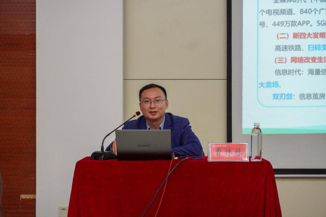首先,曹林林介绍了舆情的概念及特征,并通过生动的案例让大家了解了在校园负面舆情中学校以及学生正确对待和处理的方法。他指出,作为新时代青年,要正确看待舆情,不盲目跟风、不发表不当言论,不断增强法治意识。