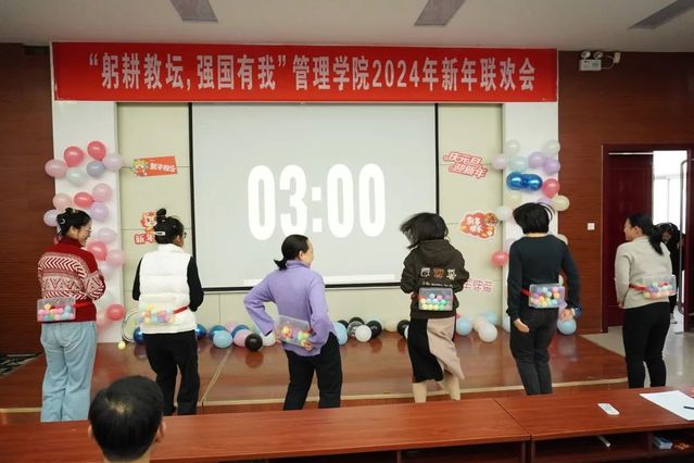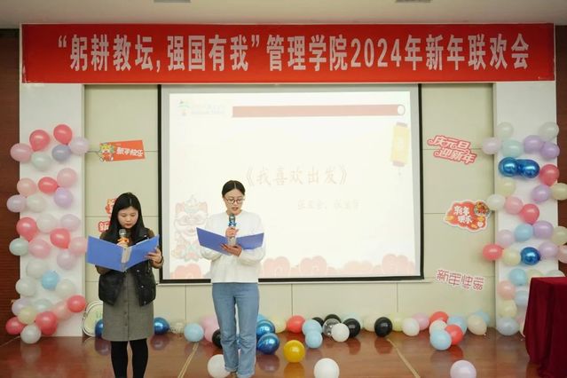 ?为庆祝2024年元旦佳节,管理学院于12月28日,在四号教学楼二楼报告厅举办“躬耕教坛,强国有我”管理学院2024年新年联欢会,学院全体教职工共同参与,回望2023年的辉煌,展望充满希望的未来。