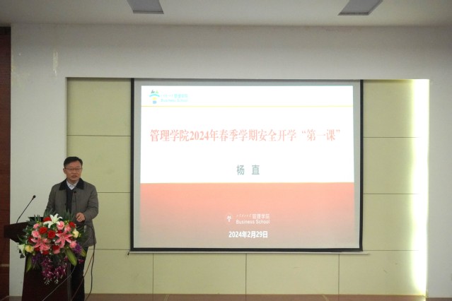 开展安全开学“第一课”活动。2月29日,管理学院在报告厅举行了2024年春季学期安全开学“第一课”活动,全体教职工参加。党委书记杨直传达了近期学校相关会议精神及校党委对学校安全工作的部署,强调了教师安全注意事项,详细讲解了消防安全、交通安全、网络安全、考试安全等方面要求。全体教师认真观看安全警示教育片,杨直结合近期出现的安全事故提出了要求,安全无小事,安全教育是学院工作的重中之重,希望全体师生能够认真学习、积极实践,将安全意识内化于心、外化于行,把安全工作放在首位,严格落实安全管理责任制,压实安全主体责任和监管责任,确保安全工作规范落实到位。