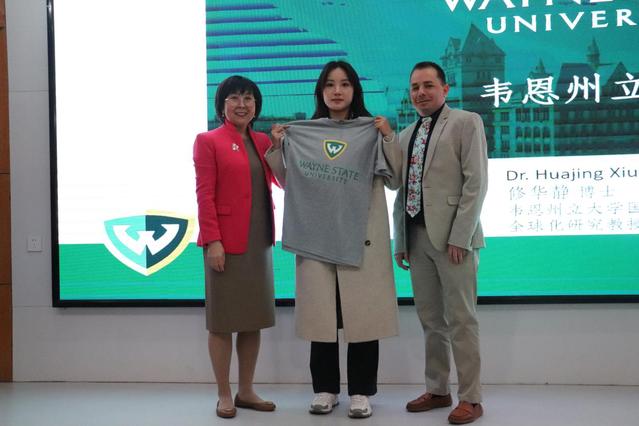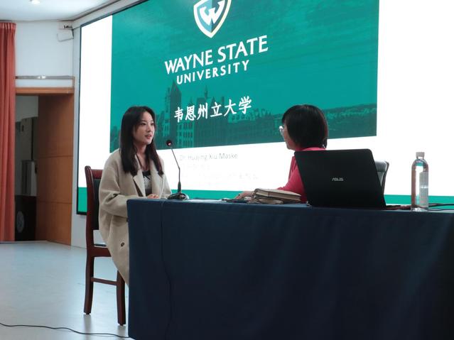 讲座伊始,修华静教授热情地向同学们介绍了韦恩州立大学的校园基本情况,包括地点、校园环境、专业概况、学科领域等方面。首先,修华静教授以个人经历引入大学生目前面临的挑战与机遇,她认为该交流项目不仅为学生提供了走出国门、感受不同文化的宝贵机会,更是对于培养学生的全球意识、促进文化融合、提升学术水平以及增强国际竞争力都具有重要意义。接着,在问答环节,修华静教授与同学们密切交流,重点介绍了韦恩州立大学与我校“3+2”本硕联合培养项目,使同学们对这一出国留学项目有了更加直观和深入的了解。除此之外,修华静教授邀请韦恩州立大学在读学生为同学们介绍校园日常生活,以更加贴合学生生活的视角向同学们传达在韦恩州立大学生活的实际感受,激发了在座同学们了解国外学习生活的浓厚兴趣。