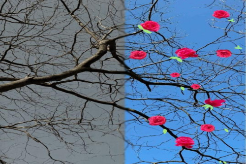 另一个主题“枯木逢春”。同学们需要拍摄一组尚未开花的树木照片,然后运用Photoshop软件或手绘技巧,将一组尚未开花的树木照片变得充满生机让枯木展现出春日的色彩与生机。这一环节不仅考验了同学们的创意和技术水平,更让他们深刻体会到了春天的生命力与希望。