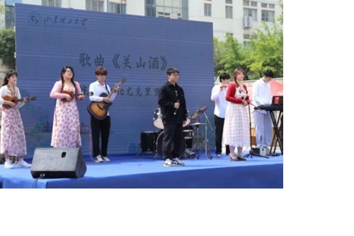 4月19日,太阳成集团tyc122cc入口社团指导中心于大学生艺术中心广场举办“乐享非遗,传承经典”国风音乐会。Aloha尤克里里社团作为一支充满活力和创意的团队,积极参与其中,用他们的热情和才华歌唱了一首古风歌曲《关山酒》,为观众们带来了一场别样的音乐盛宴。