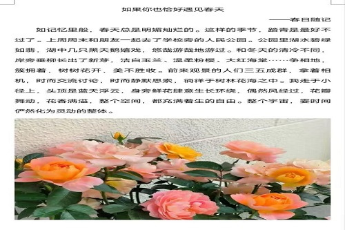 为迎接已然临至的春天,激发学生对春天美好的感知与创作灵感,营造积极向上、创新包容的校园文学氛围,4月254月28日慧语口才联盟线上举办了“将诗意盎然的春留在纸上”短文活动,共有60位学生积极参与。