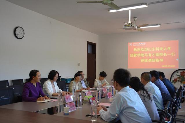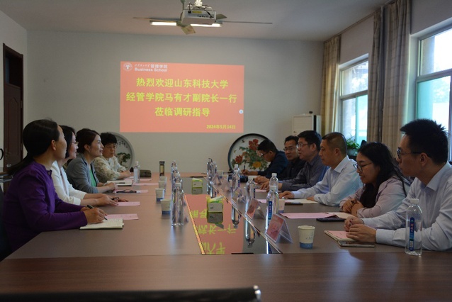 ??2024年5月15日下午,山东科技大学经济管理学院副院长马友才、经济与贸易系主任孙江永、工商管理系支部书记李成宇、工商管理系教授张学睦、大数据管理与应用系支部书记周长红、物流管理系博士程兴群一行6人来到我院,调研专业人才培养以及相关教学科研建设情况,我院党委副书记张佳,副院长白福萍,工商管理系、工业工程系、会计学系、信息管理与信息系统系相关负责人与来访客人进行了座谈交流。