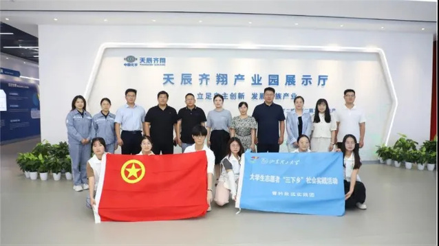 仪式开始前,双方领导老师与实践团成员参观天辰齐翔企业展厅,详细了解了企业基本情况、文化及成就。