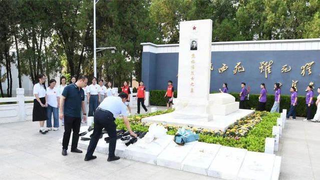 参观结束后,实践团来到庄严而肃穆的焦裕禄烈士墓前,为焦裕禄同志献花。而后,全体成员整理衣装后站定瞻仰烈士墓、集体鞠躬,以表达实践团对焦裕禄同志的敬佩和追思。