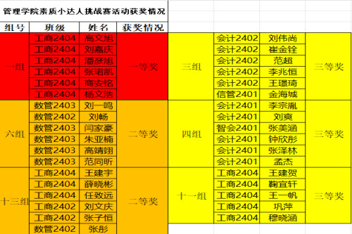 全部参赛者在完成四项游戏关卡后,实行打分制。现场由组织监察工作人员进行计时打分,根据选手最后分数排名评奖,并按照排名评选一、二、三等奖。最后,活动负责人将获奖名单发送至QQ通知群进行公示,至此活动正式结束。此次比赛组织严谨,有条不紊,院内学生踊跃报名,积极参加,既赛出了水平,也赛出了风格。