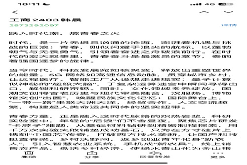 此次管理学院“青春笔触”写作活动,激发了同学们的思考与自我认知,同时,通过写作的方式传递青春正能量,锻炼思维能力。青春是充满理想与热爱的时期,是充满活力与可能性的阶段。感悟青春,不仅仅是回望过去的灿烂岁月,更是在当下反思如何利用这段时光实现自我成长与蜕变的过程。愿同学们在今后的生活中,勇敢追寻自己的目标,冷静面对生活中的困难和挑战。同时,保持积极乐观的心态,增强社会责任感与群体凝聚力。