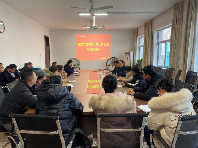 2024年12月19日下午,我院在4号教学楼204会议室举办硕士研究生导师培训会。此次培训会邀请了校长特别助理、校学术委员会副主任、经济与管理学部部长李平教授为学院硕士研究生导师做专题讲座。管理学院副院长白福萍、宋剑锋以及研究生导师和新进青年讲师出席了此次培训会。