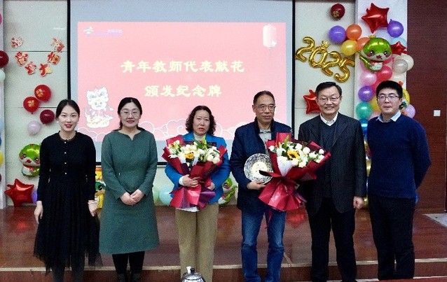 活动伊始,张佳介绍了两位教师的从教经历。在热烈的掌声中,杨直、孙秀梅为两位教师颁发纪念奖盘,学院青年教师代表为两位教师献花。