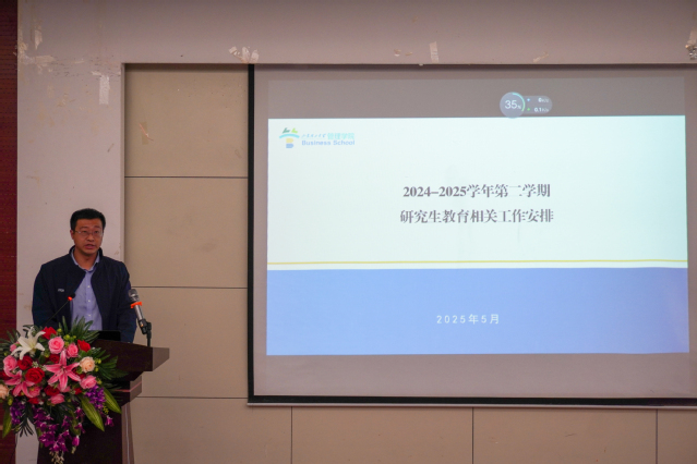 副院长宋剑锋介绍了2024-2025学年第二学期研究生教育相关工作安排,他从研究生期中教学检查安排、毕业论文注意事项、研究生就业推进工作等方面做了详细汇报。宋剑锋强调要高度重视期中教学检查工作,保证教学活动的规范性,严格按学校要求组织中期筛选考核、校级研究生教育质量提升项目检查等活动,他要求导师也要关注学生就业动向和心理波动,主动推进学生就业,及时开展心理疏导。