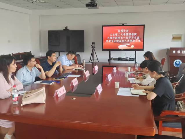 在济南大学,刘毅副院长等领导进行会见并座谈。刘院长主要介绍了济南大学商学院经管类专业建设和人才培养成效;会计专硕学位点专项合格评估的注意事项,评估报告的撰写等。此外,双方还交流了会计学本科专业人才培养方案修订、毕业论文、实习实践等培养环节事项。