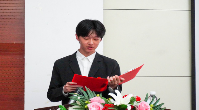 紧接着,实践团学生代表彭福发言。他表示,作为新时代青年,将积极投身实践,深入基层,在服务中接受锻炼、积累经验,立志做有理想、敢担当、能吃苦、肯奋斗的新时代好青年。